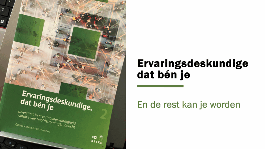 Wij, kitty jurrius en ik,schreven in het boek: “we roepen eenieder op, die werkt met of vanuit ervaringsdeskundigheid, om verschillen te respecteren en te zien én de overeenkomsten tussen de twee visies te gebruiken om ruimschoots te kunnen profiteren van de rijkdom aan ervaringskennis. We zijn ervan overtuigd dat de twee visies complementair zijn aan elkaar. Door ze zo te (h)erkennen kan deze ervaringskennis van toegevoegde waarde zijn aan het evenwaardig positioneren van ervaringskennis bij de kennisbronnen van de praktijk en theorie.