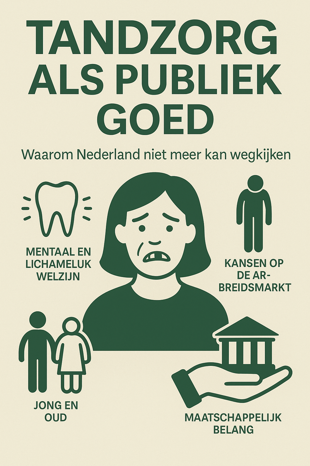 Het persoonlijke verhaal van Liesbeth laat zien hoe het huidige systeem faalt en hoe dat falen niet alleen individuen schaadt, maar ons allemaal. Haar levensverhaal, zoals zij het beschreef, weerspiegelt een diepere maatschappelijke trend: tandzorg is geen individuele verantwoordelijkheid, maar een publieke taak.